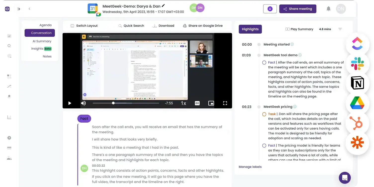 - Team collaboration lets you share meeting clips and highlights with teammates instantly