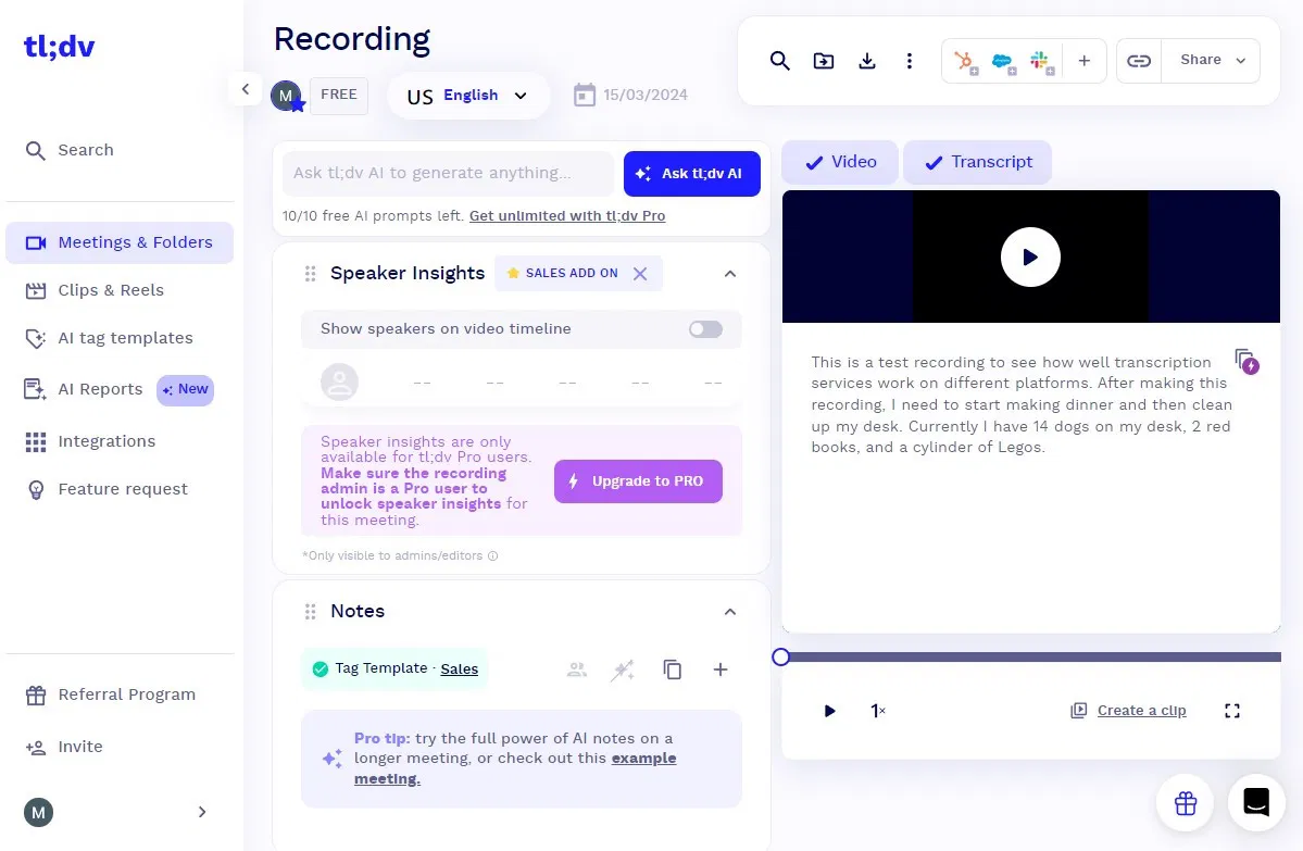 tl;dv offers genuinely unlimited recordings on its free plan. Unlike other "free" options with restrictive limits, it's ideal for individuals and small teams on tight budgets.